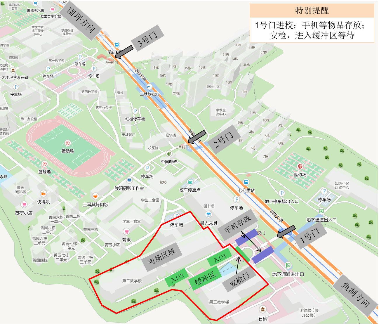 其他:具体考场安排请以准考证说明为准,为保障考区秩序,所有社会车辆请勿驶入校园或在考区门前停留。